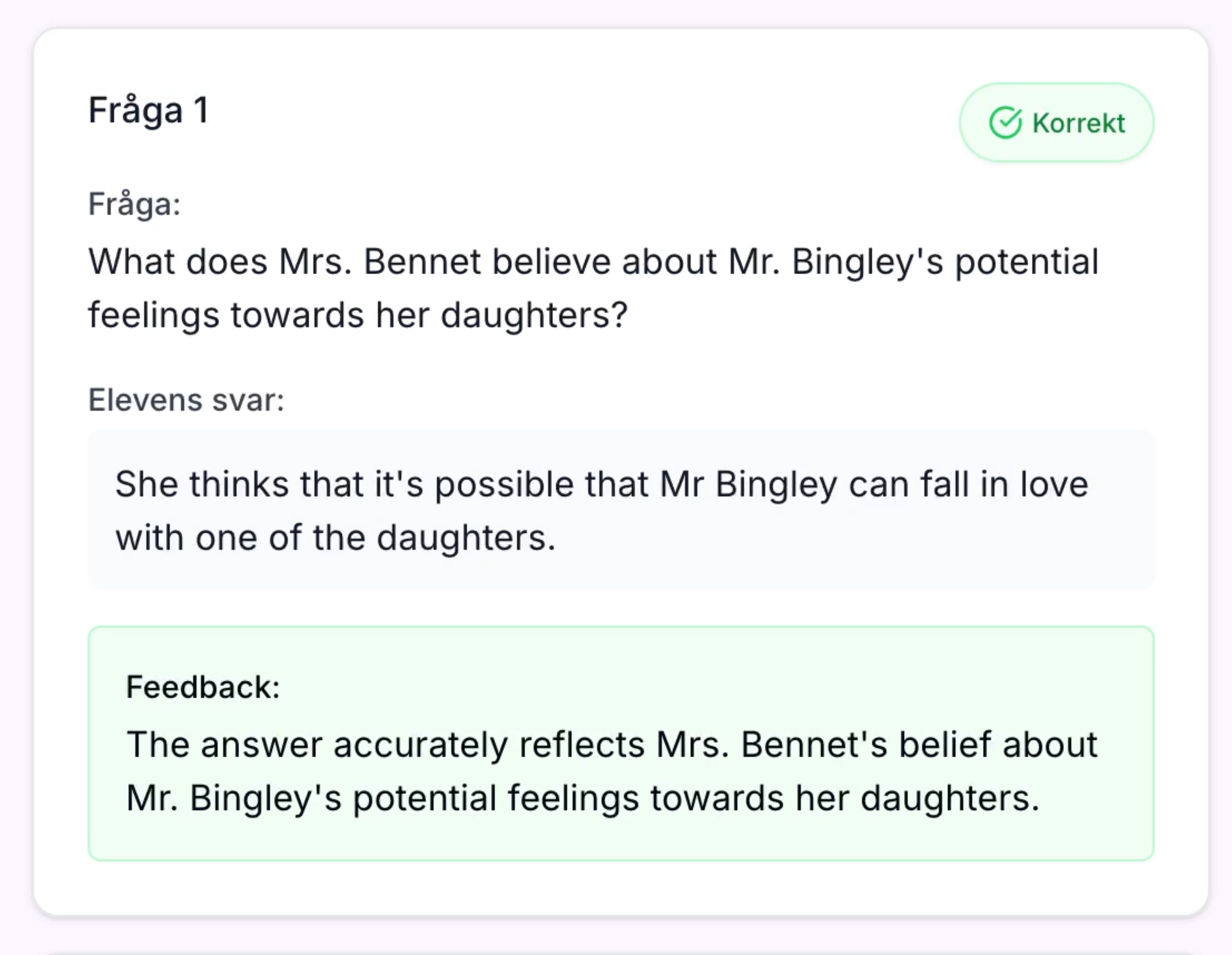 With the feature for reading, you can add texts and let AI generate questions that are automatically corrected. This saves time and gives students instant, meaningful feedback.